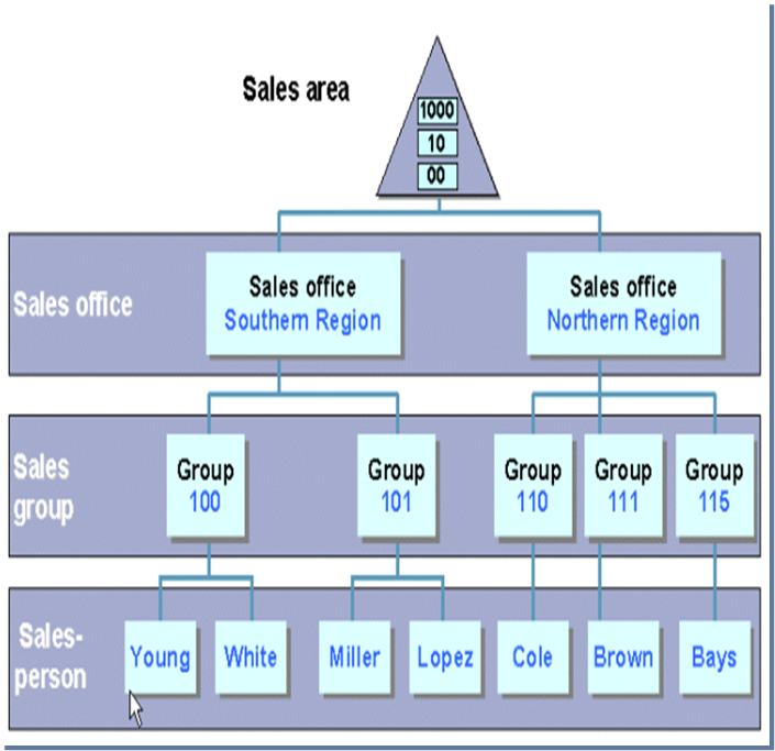 제/상품에 대한 판매 권한을 가지는 영업사원들의 그룹 단위 (SAP상에서 해당 구조의 설정은 선택사항이다)