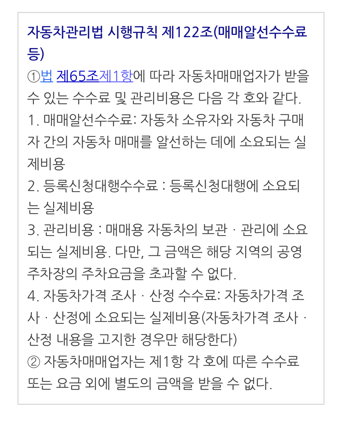 - 딜러가 직접 매입한 차량이면 매매수수료 요구가 있어도 지불하지 않아도 됨