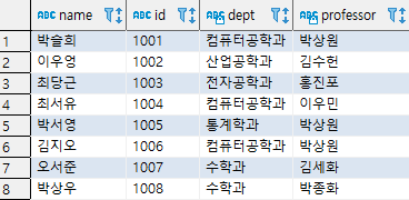 : student테이블의 -> 컴퓨터공학과 학생 중 -> 교수님이름이 박상원인 -> 테이블을 반환한다.