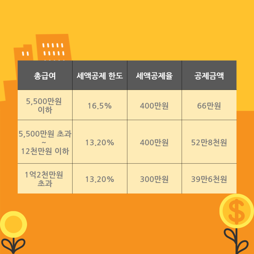 연 세금공제를 받을 수 있는 한도금액은 최대 400만원입니다. (비과세 년 소득 5,500만원 이하 기준)